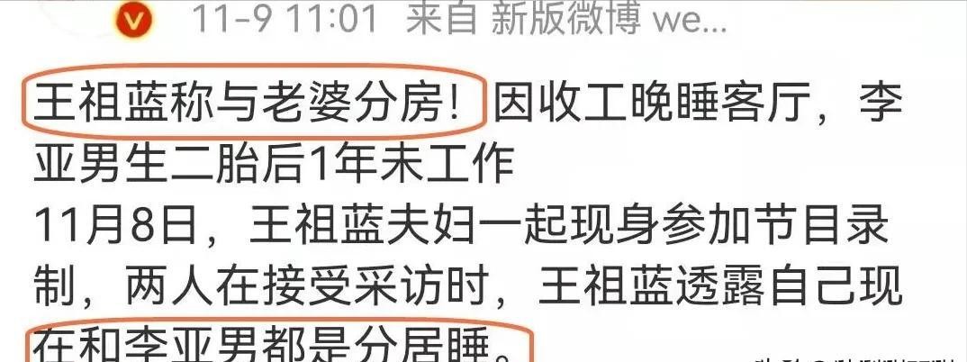 王祖蓝高调宣布:“10年婚姻要结束了,因为我骗了我老婆”