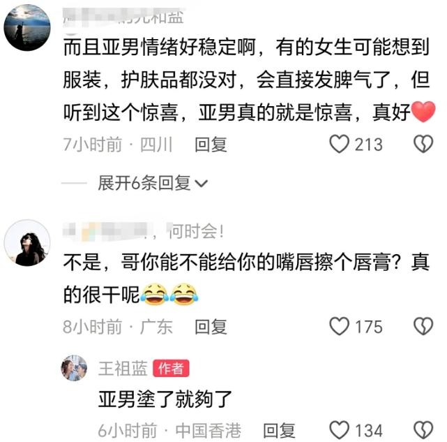 王祖蓝已经把所有的厚衣服都换成了夏天的衣服,很细心,这样才算是惊喜。
