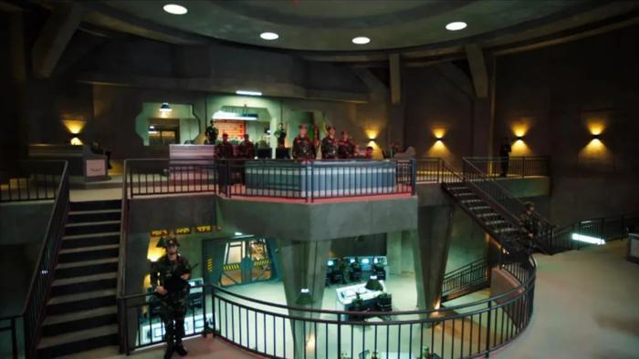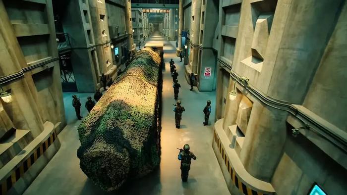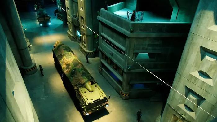 而火箭军待机库,也是剧组专门在青岛的东方影都的摄影棚搭建的场景,由5000平方米和6000平方米两个摄影棚共同组成了这个极为接近实景拍摄的重要场景,有作战区、生活区、维护区等,似真但又不是真。