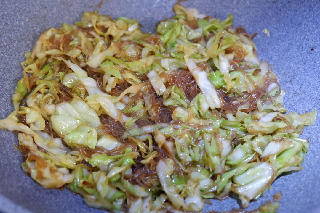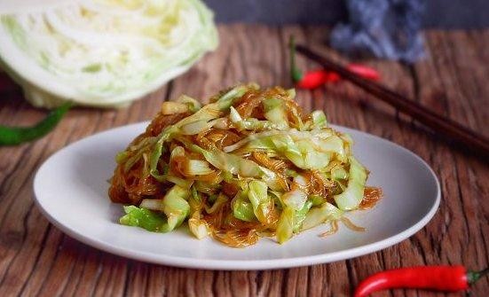 圆白菜炒粉丝这么做,粉丝不成坨不粘锅,清爽滑嫩,超级下饭