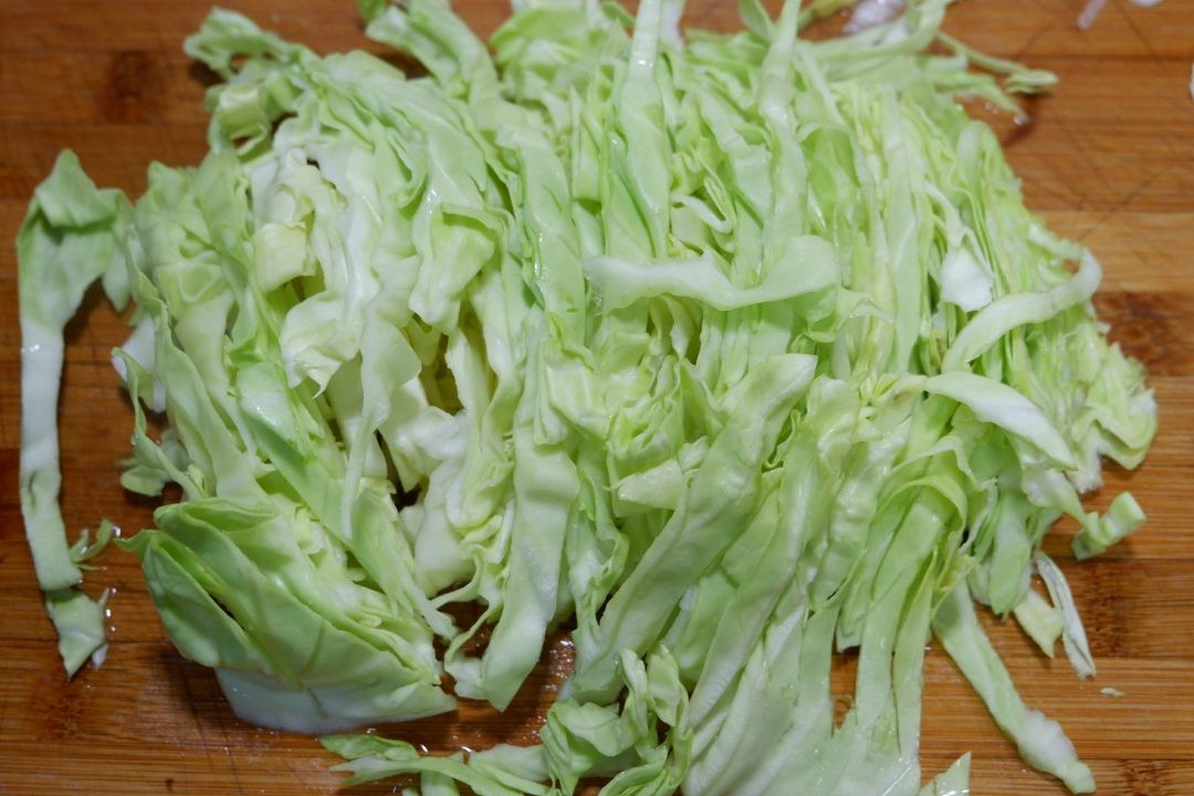 圆白菜洗净对半切开,切成细丝备用