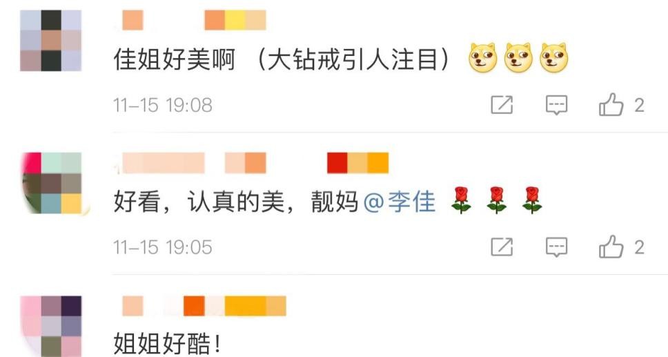 不仅如此,李佳随意的造型却似乎暗藏玄机。她微微握拳,恰好将无名指上的钻戒展现了出来,这一举动也被不少人认为是在甜蜜的秀恩爱。