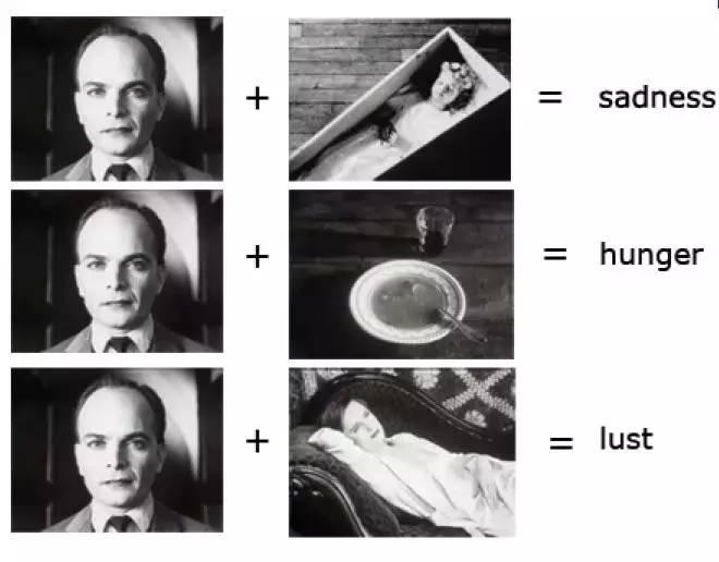这个实验进一步证实了两个不相干镜头的并列,可以赋予片段全新的意义这一核心理论。