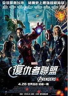《复仇者联盟》(英语: The Avengers)是一部于2012年上映的超级英雄电影,改编自同名漫画,乔斯·韦登执导[8]。本片是漫威漫画改编的电影中第一部获得超过十亿票房的电影。该片为漫威电影宇宙合系列电影中的第六部电影,亦为首部由迪士尼发行的漫威电影。导演自己透露,初版剪辑版本长达3小时,其中有30分钟围绕在美国队长如何从冰封解冻与认知所处的现今。