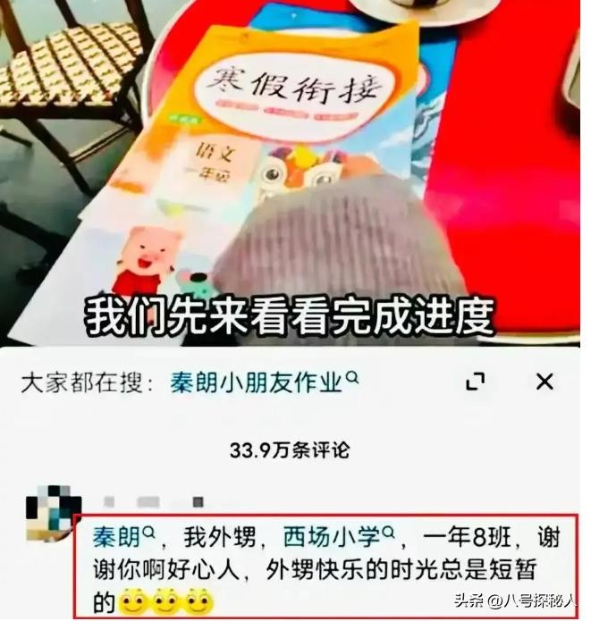 第二天,评论区一位自称“秦朗”舅舅的人表示:这是侄子的寒假作业,就读西昌小学。