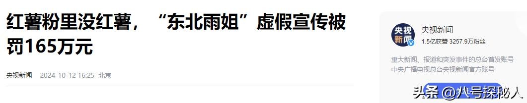 央视新闻——红薯粉里没红薯,“东北雨姐”虚假宣传被罚165万元
