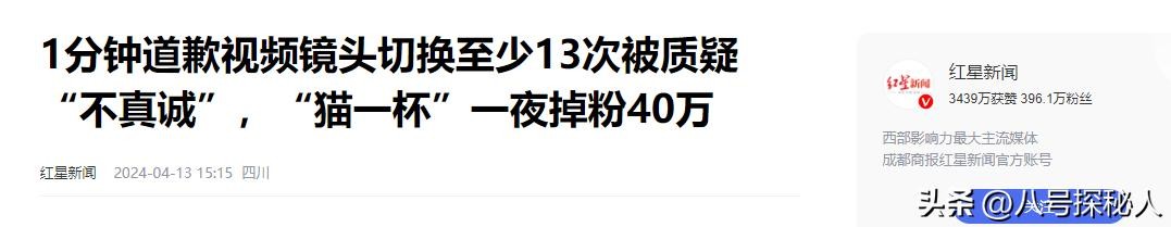 红星新闻——1分钟道歉视频镜头切换至少13次被质疑“不真诚”,“猫一杯”一夜掉粉40万