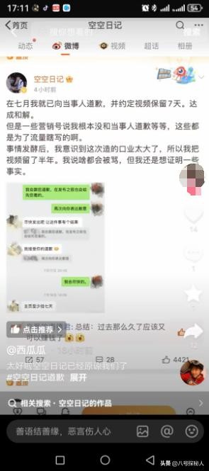 空空日记也非常理智,发布了一则道歉视频,不过这个道歉明显没有诚意,他将所有问题归咎于情绪激动引起的。