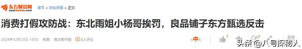 南方都市报——消费打假攻防战:东北雨姐小杨哥挨罚,良品铺子东方甄选反击