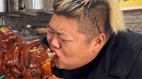 为了吸引更多的粉丝和流量,他几乎什么都吃,50斤的大牛骨,22斤的牛腿,基本上都被他一顿饭所搞定。