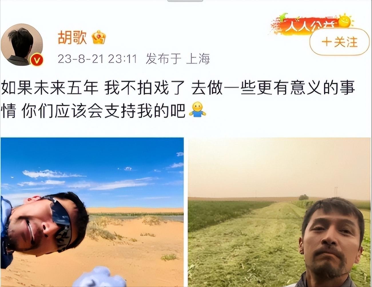 胡歌这些年出现在大众的视野中还是上次在互联网上发出“不再想演戏”的emo风格,紧接着又在互联网上为自己加油打气。