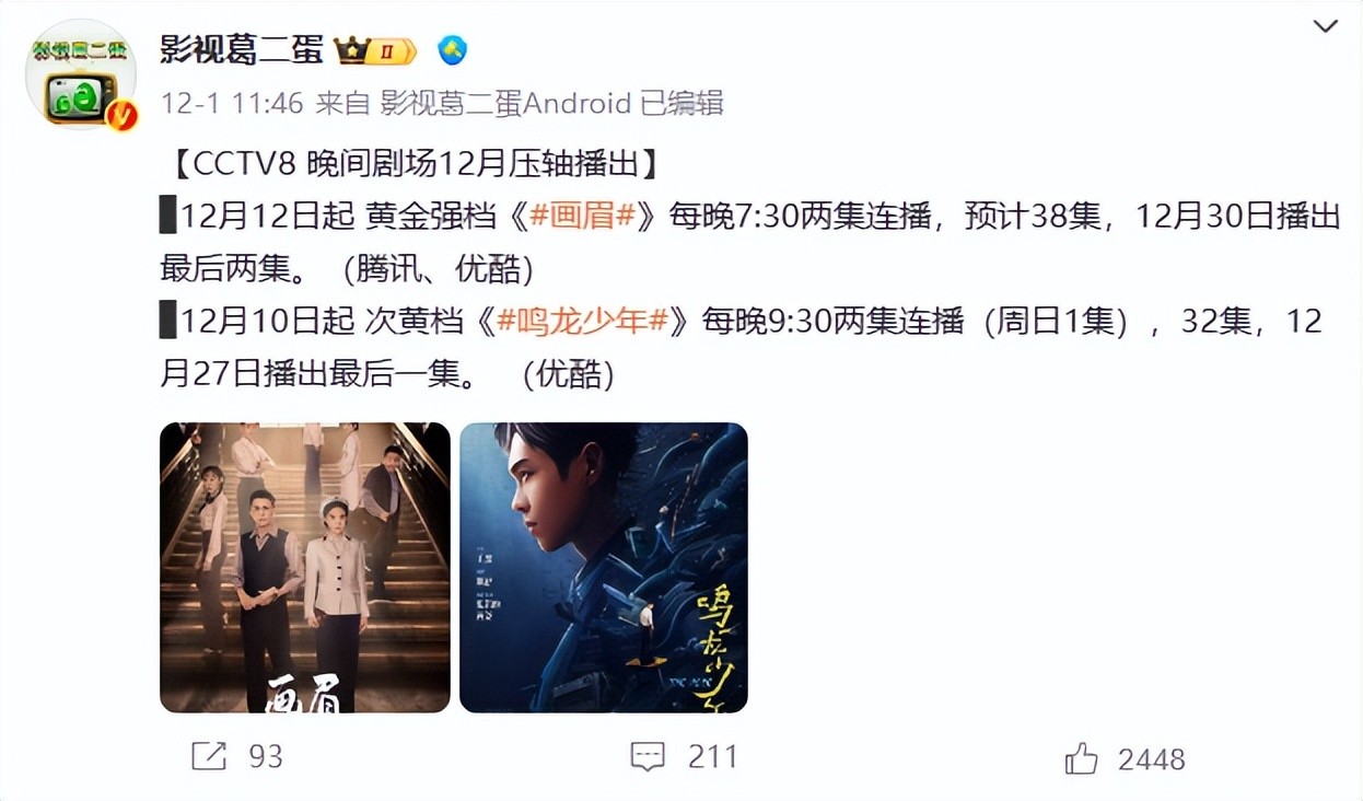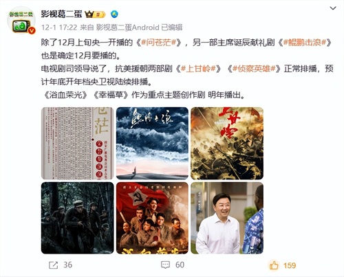 再比如歌颂青春事迹的《鸣龙少年》和谍战剧《画眉》也将在央视大展身手,一部部电视剧都像是有备而来。