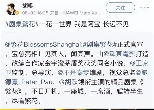 这部电视剧从2020年就已经宣布开拍,当时看到阵容的时候属实是把人吓了一跳,胡歌和王家卫两人竟然要合作,无数影迷就开始疯狂吆喝着期待。