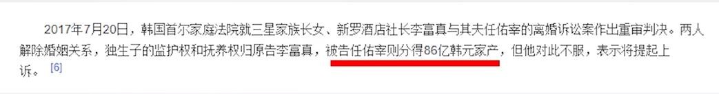任佑宰虽然嘴上嚷嚷着不想离婚,但心里的算盘早已打得噼里啪啦,面对已是亿万女富豪的前妻,任佑宰在法庭上狮子大开口,打算最后再捞一把,他的请求是,分得李富真一半家产,当时李富真身家高达2.5万亿韩元,这个渣男有多狠,大家自己品,但是一审判决后,任佑宰只得到了86亿韩元。