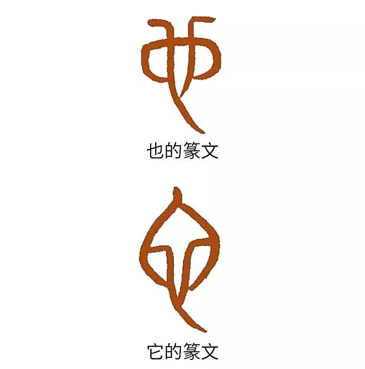篆文地字从土,也声。土即地,地即土。最初也字和它字本属一家,可以通用。但由于地区不同,发音不同。细看篆文也它二字,仍然形似,都象眼镜蛇头。略有差异是也字蛇头吐分岔的舌尖。许慎认为也字象女阴形,也有道理。