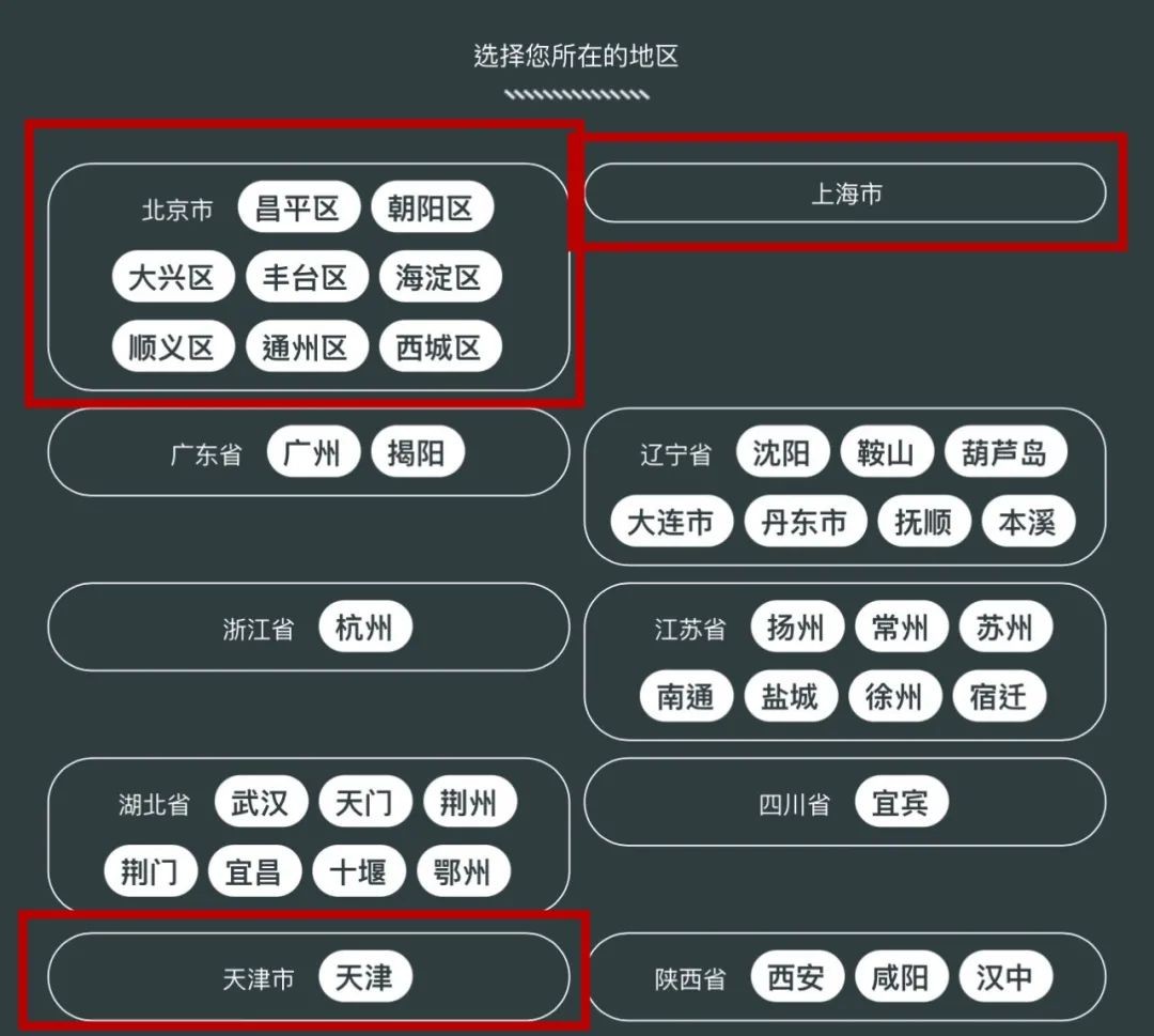 直辖市都会列出具体区域,参照北京市、天津市,但是上海市后面是空的 ↑