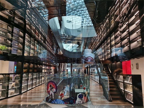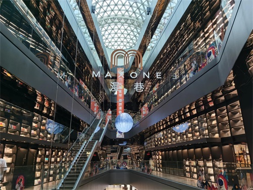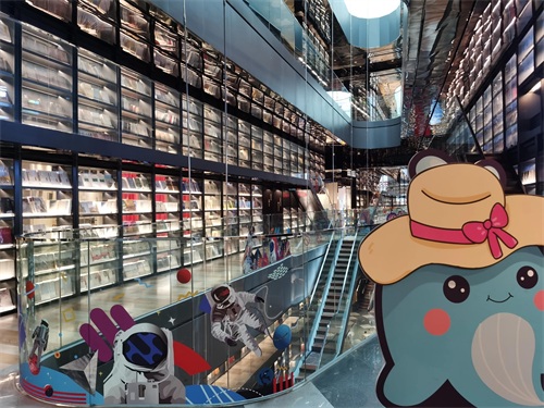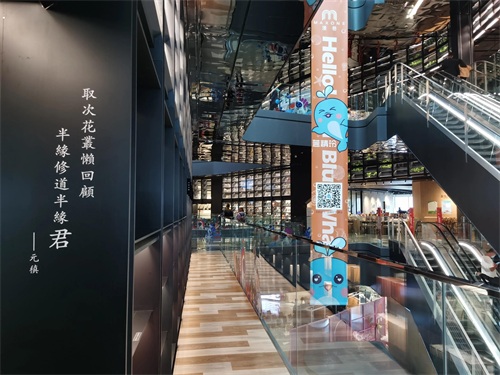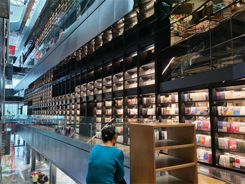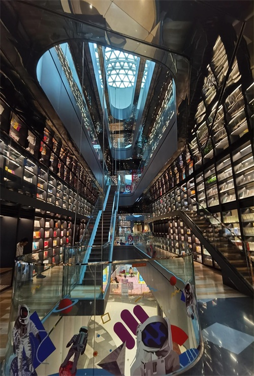 抬眼望去,二层三层悬浮着一个全长240米,层高18米的全国最大最美书墙。