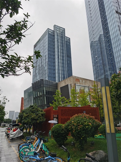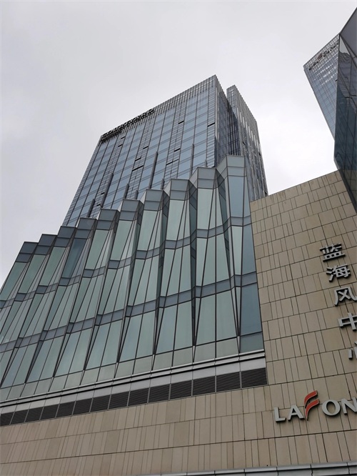 抬头看去,一座拥有立体几何完美线条的大楼十分引人注目,想来一定是蓝海风.万邦了。