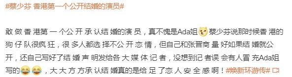 原来,港星蔡少芬在节目中透露,她是香港第一个公开承认结婚的演员。
