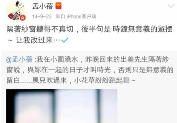 到孟小蓓博士毕业时,论文里满满地都是感谢李健先生的话。而他们早期的微博就能看出来,孟小蓓称李健为先生。