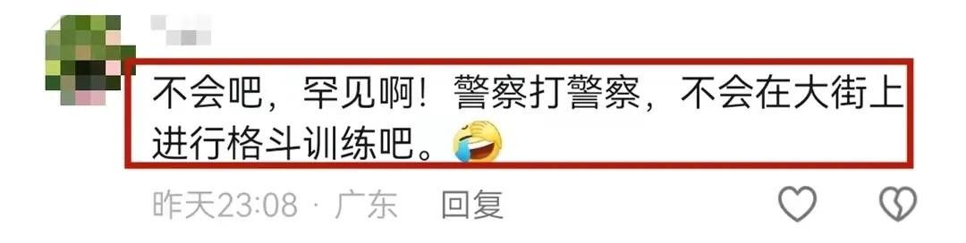 有的网友甚至为警察开脱,说他们是进行格斗训练的!哪有在大街上进行格斗训练呀?