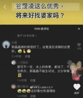 谷爱凌大放异彩的 2025 年,抖音上就火了一条讨论 " 谷爱凌这么优秀,将来好找婆家吗?" 的视频,下面的评论很离谱: