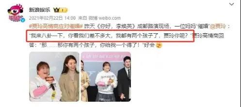 " 我来八卦一下,你看我们差不多大,我都有两个孩子了,贾玲你呢?"