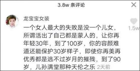 然后在有的网友眼里,事业成功、结婚生子还不算完,最后生的 " 还得是男孩 "。为啥呢?因为挣这么多钱,这么多资产最后没人继承," 而且还不能给女儿和女婿,嫁出去了就不是自己这边的人 " 了。