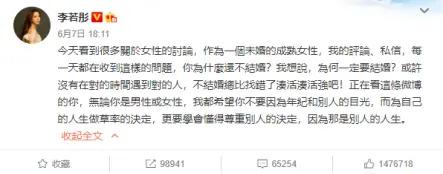 当时还有不少女明星为杨丽萍站台,比如李若彤说:" 为何一定要结婚?不结婚总比找错了凑合强吧!"