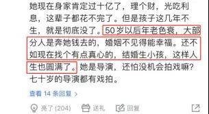 比如有人认为事业成功不等于人生圆满,认为导演贾玲到 70 岁都有戏拍,当务之际是抓紧 " 找个有点真心的,结婚生小孩 ",因为这样才能 " 人生也圆满了 "。