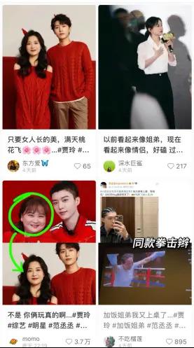 贾玲和范丞丞的加饭 CP 就不一样了,这一对的热度一直很高,最近的小红书、微博上,甚至出现了不少贾玲瘦了以后的 CP 图。