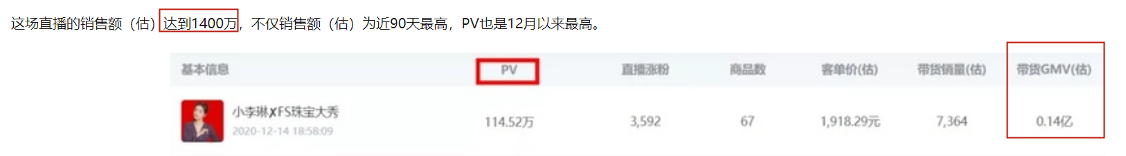 在去年12月的一场珠宝直播里,小李琳的销售额达到了1400万元。