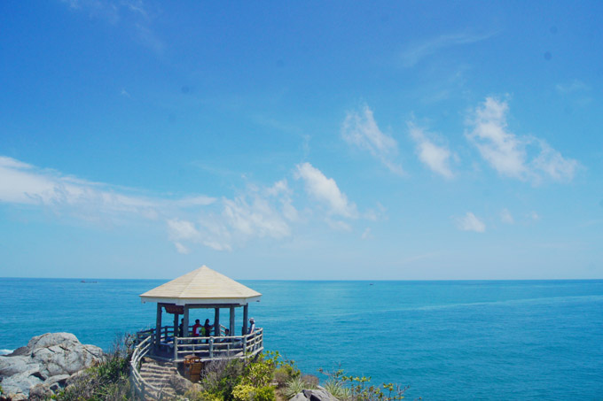 在海天相接的画面中,不远处海面上一座灯塔遗世独立。如果你觉得碧海蓝天,沙滩椰林已经看倦了,那么来这里爬爬山,登高远眺,呼吸新鲜的空气也是不错的选择。