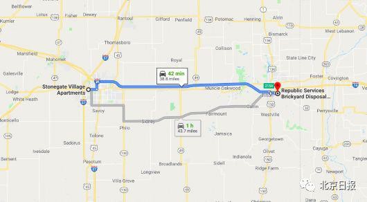 从凶手家到该郡填埋场之一的路径,驾车约42分钟