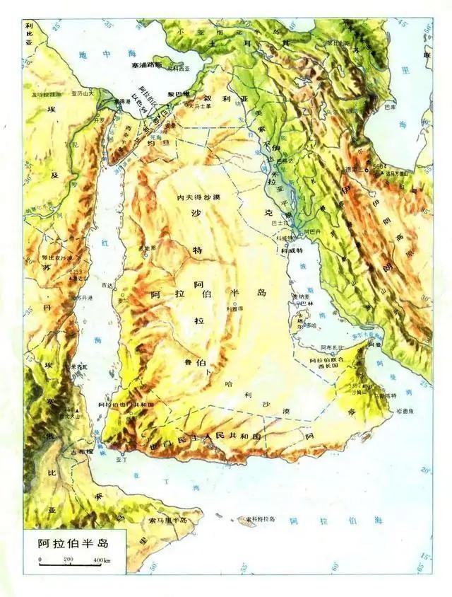 首先是阿拉伯半岛,它是世界上最大的半岛,占地面积为322万平方公里。而阿拉伯半岛位于亚洲西部,其东临波斯湾、阿曼湾,南临亚丁湾和阿拉伯海,西隔红海与非洲大陆相望,北与亚洲大陆的分界大致在西起红海东北部的亚喀巴湾北端东至波斯湾的阿拉伯河口一线。在阿拉伯半岛上,有沙特阿拉伯、也门、阿曼、阿拉伯联合酋长国、以色列等国家,其中这些国家当中以沙特阿拉伯的国土面积为最大。同时在该半岛上,石油资源极其丰富。