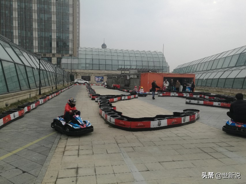 我们把车开进环球港地下停车场,感觉确实大得惊人,好像是地下二层三层是地下车库。我们在环球港玩了大半天,在美食城吃饭,在商场买了一件羽绒服,然后逛遍了该大楼各层商场、游乐场,还登上屋顶花园,观看少儿马场和竞技赛车场。