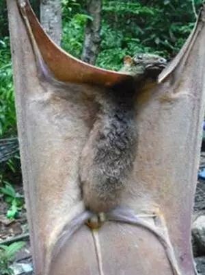 马来大狐蝠是世界上最大的蝙蝠。体长为20-25厘米,体重约为600-1100克,翼幅通常为150厘米,还好它们不是吸血蝙蝠,不然可有的受了。有一双大眼睛,较长的像犬科动物的口鼻部和长而尖的耳朵。