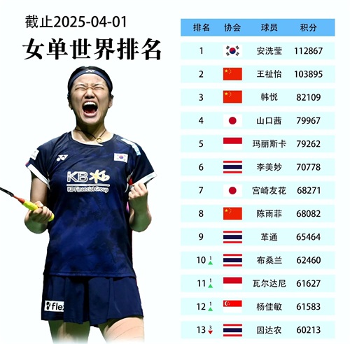 世界羽联最新一期世界排名,国羽三项排名榜首