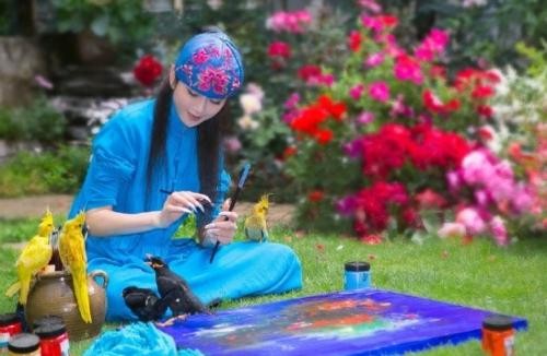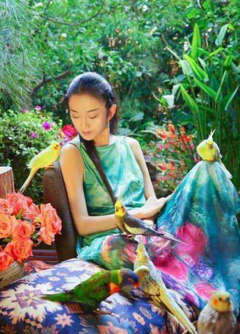 照片里鲜花满布好似仙境,杨丽萍民族风打扮,鸟儿落在她的肩上、手上、画中,丝毫不惧怕。说起美丽的家,最先想起的绝对就是这座在大理的院子。她的主人就是杨丽萍,而下面这组惊艳的照片,就是在其后院拍摄的。