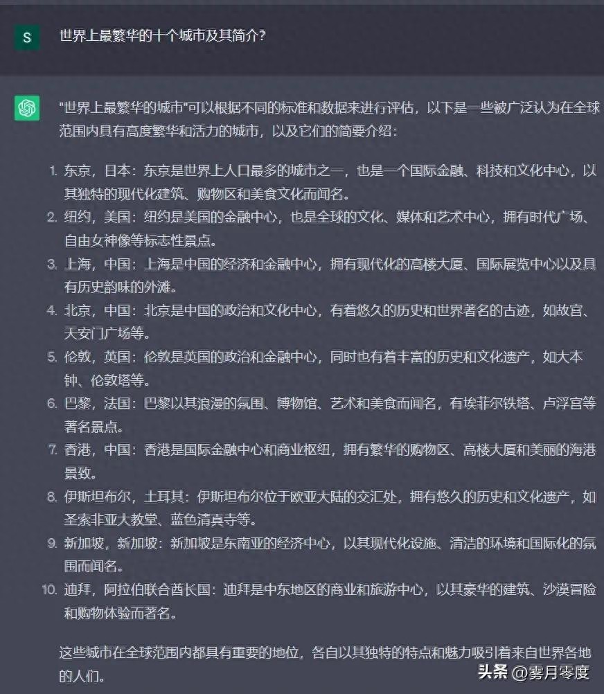 ChatGPT:世界上最繁华的十个城市是哪些?