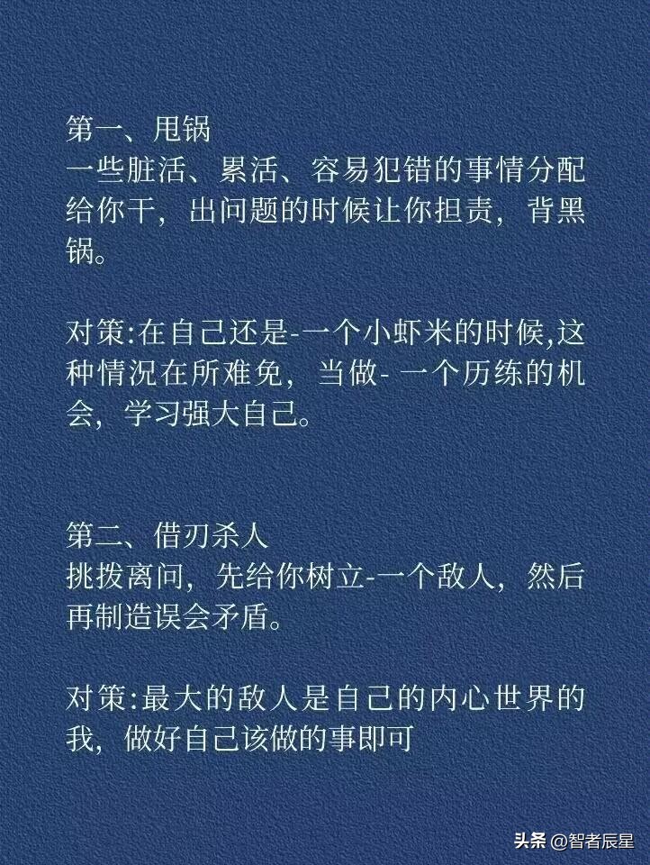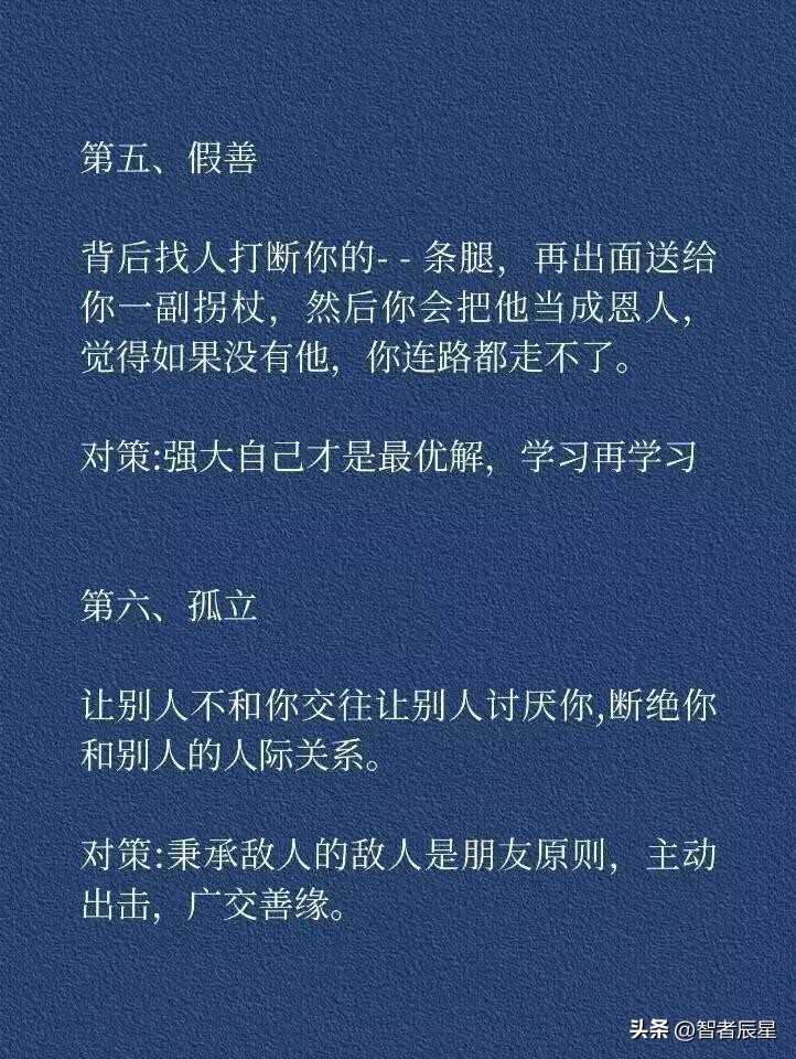 这七种阴狠诡计,无论在历史风云、职场江湖还是商场博弈中,都曾掀起惊涛骇浪。洞悉它们,并非要我们去效仿运用,而是要练就一双慧眼,在复杂世事中敏锐洞察,保护自己免受算计,以正直智慧行走世间,守护内心的清明与安宁,让这些权谋诡计在人性的光辉下无所遁形,共创一个更加纯粹、美好的社会环境。