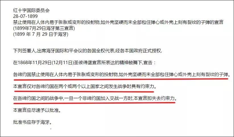 ▲海牙公约禁用达姆弹的条文