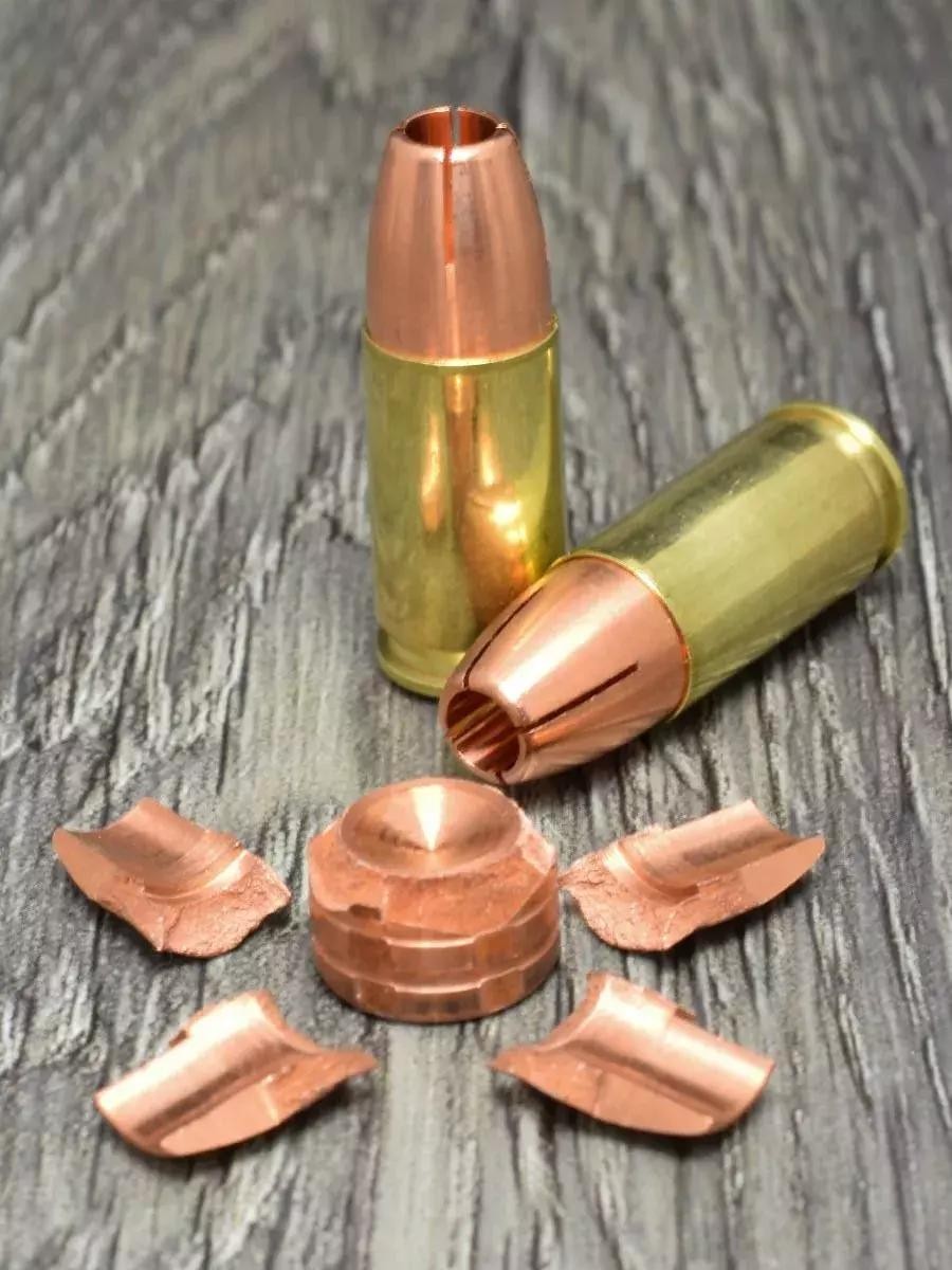 这种弹头因为前部是较软的铅,所以在命中目标之后会迅速膨胀,继而撑开侧边的铜被甲,形成一种类似开花的效果。打出来的伤口往往是口径的2-3倍大,而早前的全铜被甲弹几乎就是直进直出的一条通道。