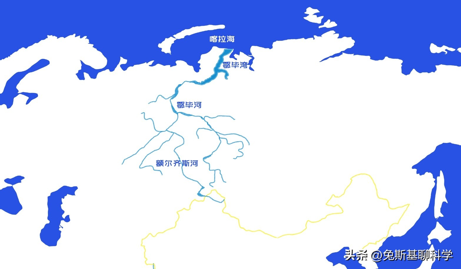 若以额尔齐斯河为源头,鄂毕河发源于中国新疆维吾尔自治区富蕴县阿尔塔山南坡,全长5410公里,流域面积297.5万平方公里。它是世界上第七长的河流。鄂毕河穿越西西伯利亚平原,最终在喀拉海的鄂毕湾注入北冰洋。鄂毕湾长度约800公里,宽度32~97公里,是世界上最狭长的海湾,也是世界上最长的河口。它的上游支流额尔齐斯河是我国唯一流入北冰洋的河流。