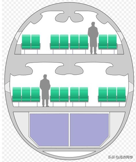A380客舱横切图,展示出经济客舱的座位配置。