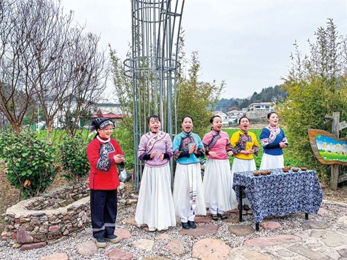 乍暖还寒之际,湖南省桑植县空壳树乡陈家坪村,游客热情不减。他们踏上吊桥,脚步轻快,刚到对岸,就被身穿民族服饰的阿哥阿姐们笑着拉住,双手奉上斟满的拦门酒。随即,一首首民歌在山谷中回响,热闹的气息弥漫开来。