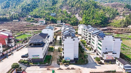 安置区紧挨着村部,6栋6层小楼,白墙青瓦,与村后的青山相映,如一幅水墨丹青。小区里,路灯、文化广场、健身器材等一应俱全。七八个老人站在楼下,晒着太阳闲聊。