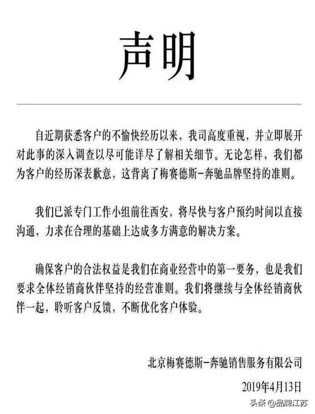 4月13日,也就是事件发生4天之后,奔驰官方发了一则不痛不痒的声明。