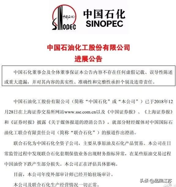 当日晚九点,中国石化很快发布了一则公告。公告重点如下: