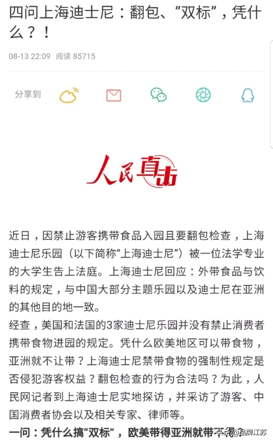 事件发酵后,人民网刊发文章《四问上海迪士尼:翻包、“双标”,凭什么?!》质问上海迪士尼。微博话题#人民网四问上海迪士尼#讨论量达4.6万,阅读量达4.4亿。一时间,上海迪士尼面临“店大欺客”“歧视亚洲地区”“侵犯隐私”等诸多指责。
